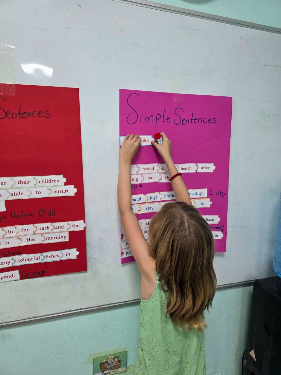 Im Englischunterricht beschäftigten sich die Schülerinnen und Schüler mit der Übereinstimmung von Subjekt und Verb. Sie lernten, wie sich das Verb verändert, je nachdem ob das Subjekt im Singular oder im Plural steht, und übten diese Regeln anhand verschiedener Beispielsätze. In Partnerarbeit entdeckten sie Muster mit unterschiedlichen Nomen und stellten ihre Ergebnisse anschließend der Klasse vor. Dadurch konnten sie ihr Verständnis vertiefen und mehr Sicherheit beim Schreiben korrekter Sätze gewinnen.