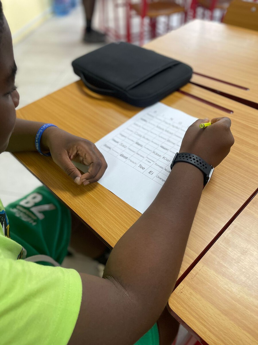 In dieser Woche haben wir uns im Deutschclub intensiv im freien Sprechen und aktiven Zuhören geübt – und das auf spielerische Weise. Bei einem Lebensmittel-Bingo wurden die gesuchten Begriffe nicht direkt genannt, sondern von den Schülerinnen und Schülern umschrieben. So lautete eine Beschreibung zum Beispiel: „klein, weiß und man muss es kochen“ – die richtige Antwort war natürlich Reis.