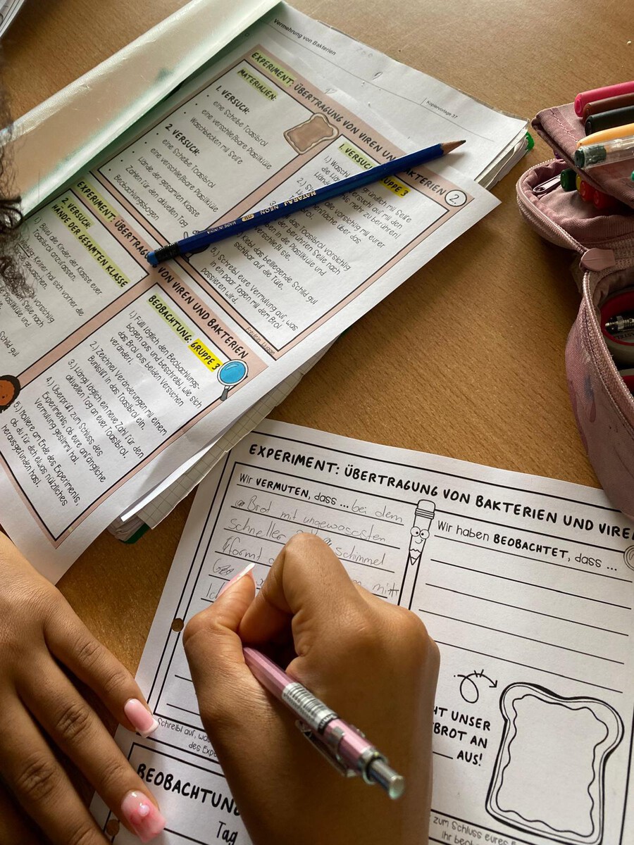 In Biologie beschäftigten wir uns mit dem Aufbau und der Lebensweise von Bakterien. Ein praktisches Experiment zur Beobachtung von Bakterienwachstum wurde vorbereitet. Außerdem wurde der Aufbau von Viren erarbeitet und ein Vergleich zwischen Viren und Bakterien gezogen.