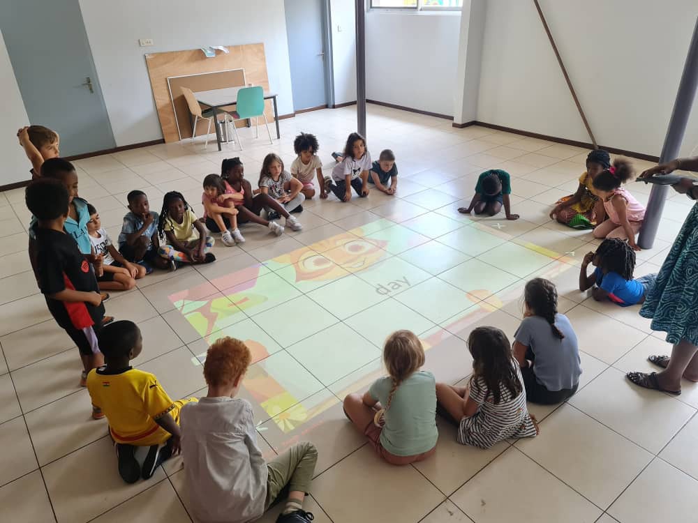 Die Phonics-Stunde endete mit einer interaktiven Übung auf dem „Active Floor“, wodurch Lernen zugleich spannend und spielerisch wurde.