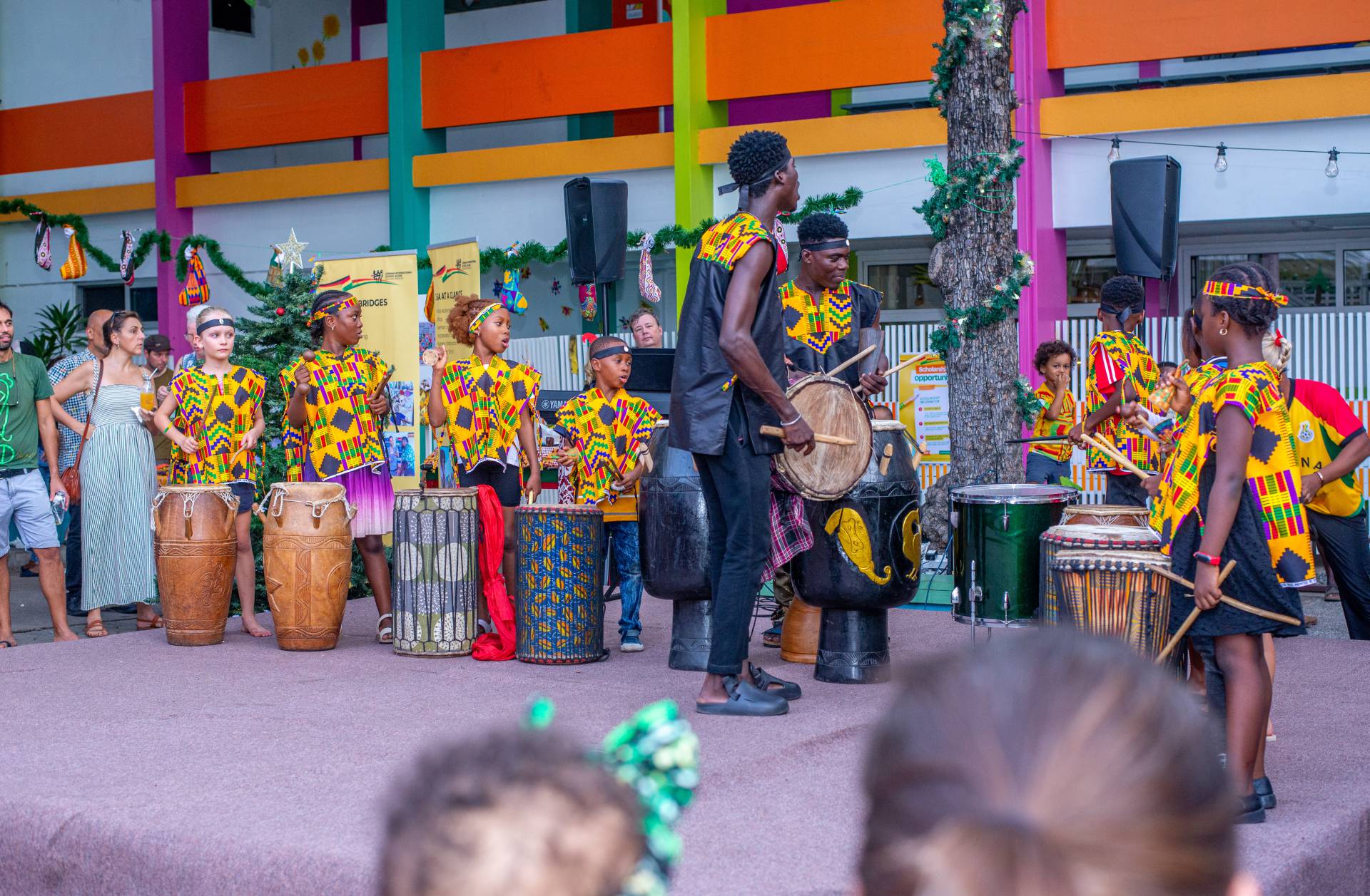 Zu den Programm-Highlights zählten das traditionelle Krippenspiel, das die weihnachtliche Geschichte auf bezaubernde Weise darstellte, sowie energiegeladene Trommelaufführungen, die afrikanische Rhythmen mit der festlichen Stimmung verschmelzen ließen. Der Chor Accragio und musikalische Beiträge von Schülerinnen und Schülern sorgten für unvergessliche Momente, die das Publikum in Weihnachtsstimmung versetzten.