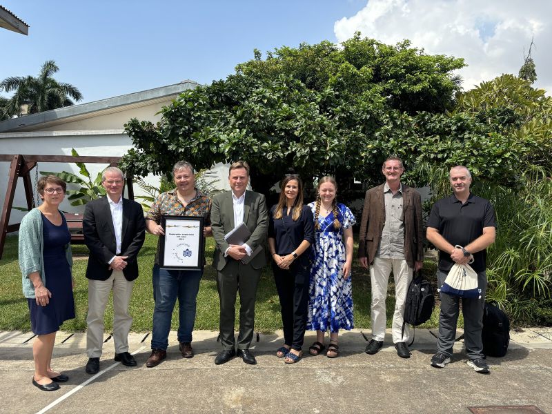 Im Rahmen einer Reise durch Nigeria und Ghana machte die Delegation der Universität Potsdam mit Präsident Prof. Oliver Günther, Prof. Dr. Hans-Georg Wolf, Prof. Dr. Andreas Borowski und Katharina Schmitt Halt an der Deutschen Internationalen Schule Accra. Seit diesem Jahr unterhalten die beiden Bildungseinrichtungen eine Kooperation, die auch schon zu einem ersten Praktikum im Rahmen der Lehramtsausbildung geführt hat.