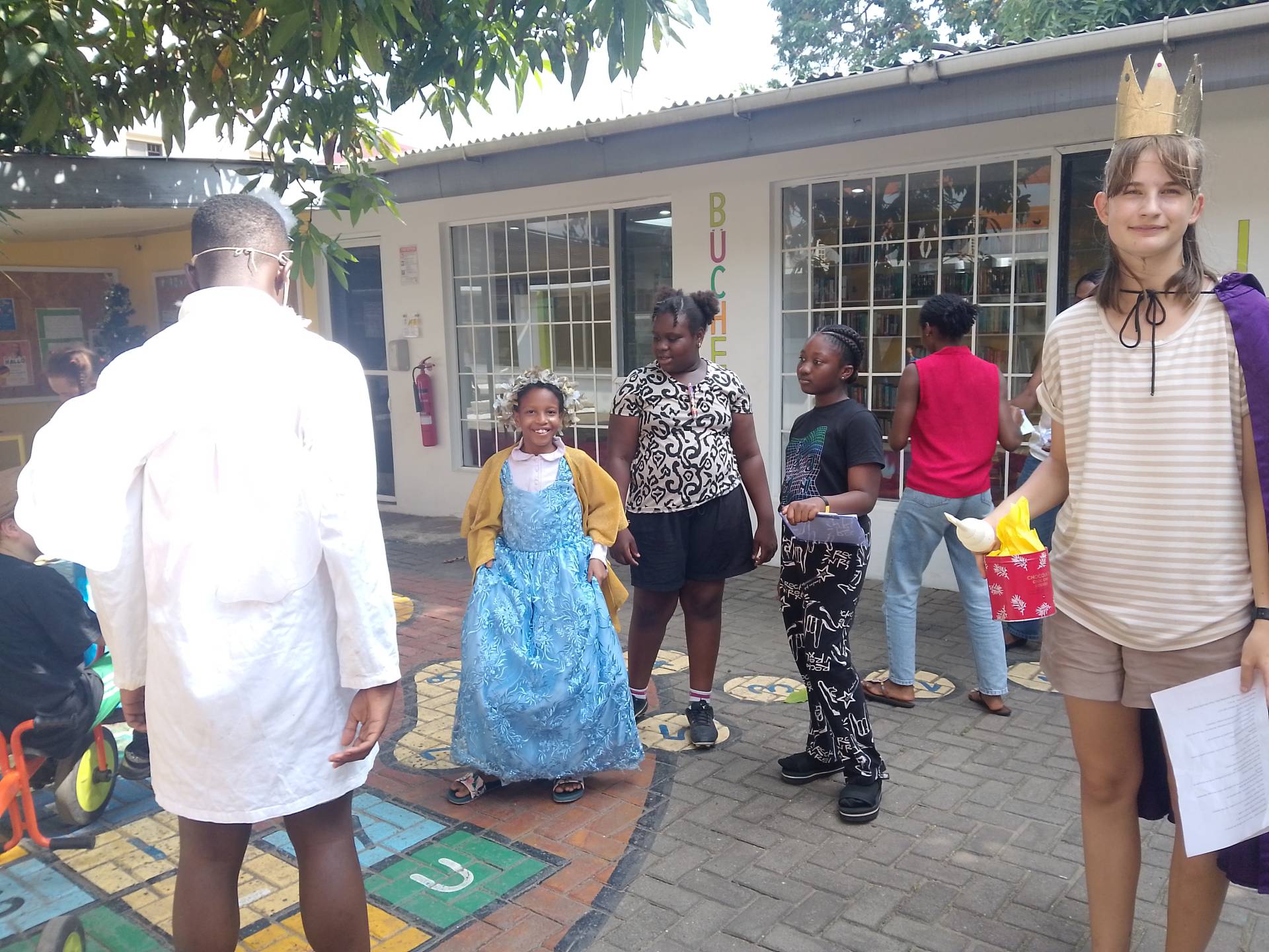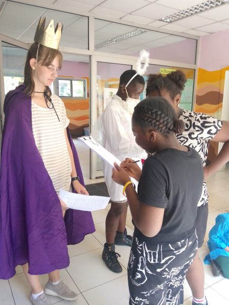 Im Französisch-Workshop arbeiten die Schülerinnen und Schüler aktuell an einem Theaterstück über Maria und Joseph. Arcani und Stephie wollten wissen, was genau gelernt wird: „Wir lernen Texte für die Weihnachtsgeschichte“, erklärten die Kinder. Besonders gefällt ihnen dabei die Vielfalt der Sprachen. Neben dem Schreiben bereiten sie außerdem einen animierten Film vor. Die Rollen im Stück sind klar verteilt: Engel Gabriel, Joseph, Maria und die Hirten.