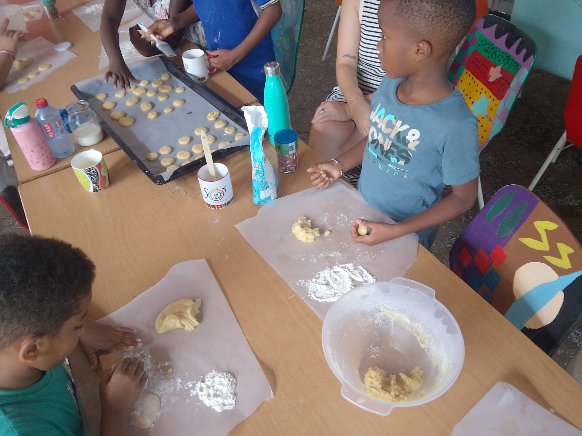 Im Backen-Projekt interviewten Hannes und Kwadwo die Teilnehmenden des „leckersten aller Projekte“. Heute standen saftige Zitronenkekse mit Streuseln auf dem Plan. Die Schülerinnen und Schüler bestätigen: Backen macht großen Spaß! Die Lehrerinnen und Lehrer planen, die Ergebnisse auf dem Weihnachtsmarkt zu verkaufen und parallel ein eigenes Backbuch zu erstellen. Besonders beliebt sind bisher alle hergestellten Kekse und Plätzchen gleichermaßen.