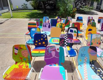 Über 70 Stühle stehen uns, zusätzlich zu den Stühlen in den Klassen und Gruppen, in der Schule für Events und die Bestuhlung unserer Mensa zur Verfügung. Stühle, die noch bis vor kurzem etwas in die Jahre gekommen und wenig attraktiv ihr Dasein fris…