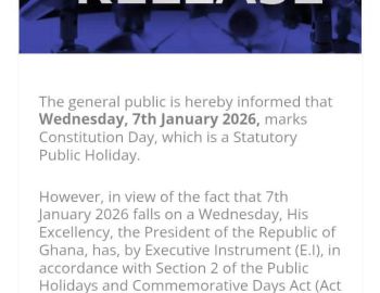 Der ghanaische Constitution Day wurde offiziell von Mittwoch, 7. Januar 2026, auf Freitag, 9. Januar 2026, verlegt.